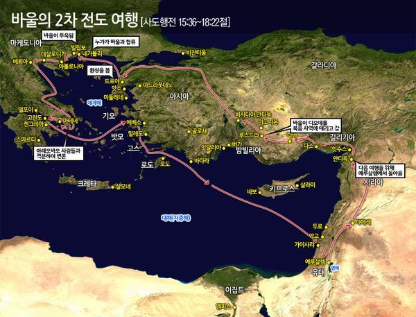 바울의 전도 여행 지도 본문