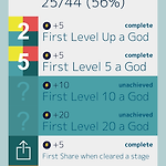 지난번 포스팅에서도 썼지만....무조 중독성 장난아니다. 지난 포스팅: http://hyunaaa.tistory.com/41 본격적으로 다시 올려본다. 먼저 번개를 얻을 수 있는 달성항목들...처음엔 대충 봤으나..번개가 점점 중요해지면서...자꾸 다시 보게 되었다.(번개 현질 할 뻔도 여러번!...-_-) 신의 처음으로 레벌 업 될 때.신이 레벨이 5가 될때. 번개 5개씩.레벨 10, 20이 될 때 10개씩. 팁. 신을 자꾸 바꾸면 레벨이 이 신 저 신 올라가므로...처음부터 신 3개를 정해놓고 레벨업시키는 것이 좋다.신을 바꾸는 데도 번개가 2개 이상 들어간다. 스테이지 클리어, 신을 모았을 때 공유.실제로 공유 안하고 공유 버튼만 눌러도 된다. 스테이지 중간 중간에 신을 깨는 곳이 있다.그 스테이를..